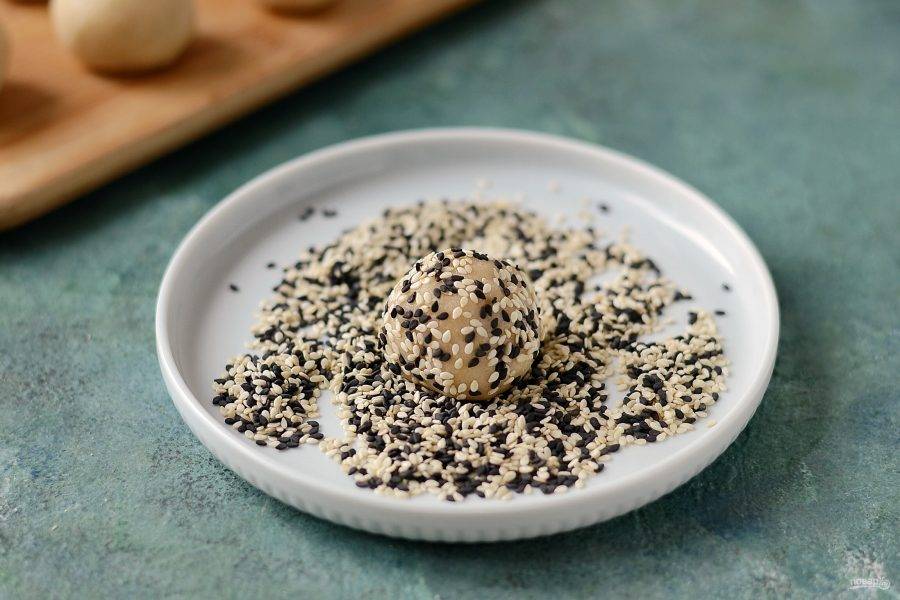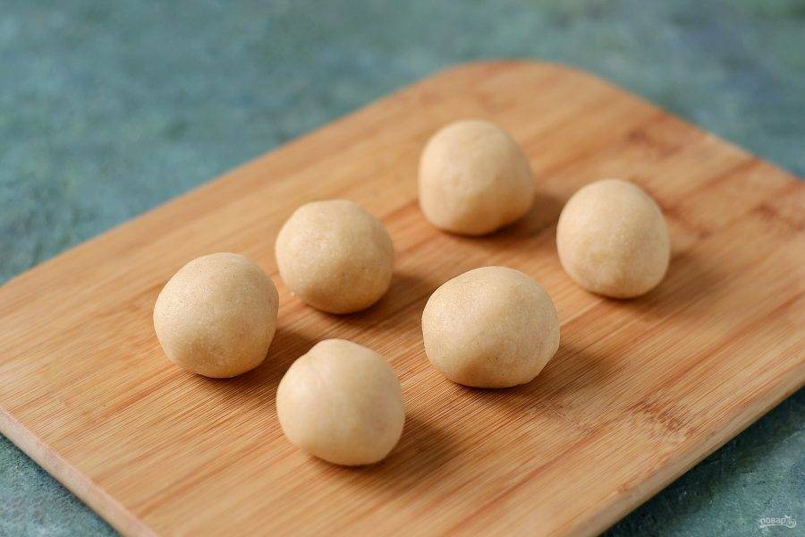 Разделите тесто на равные кусочки, скатайте из них шарики.
