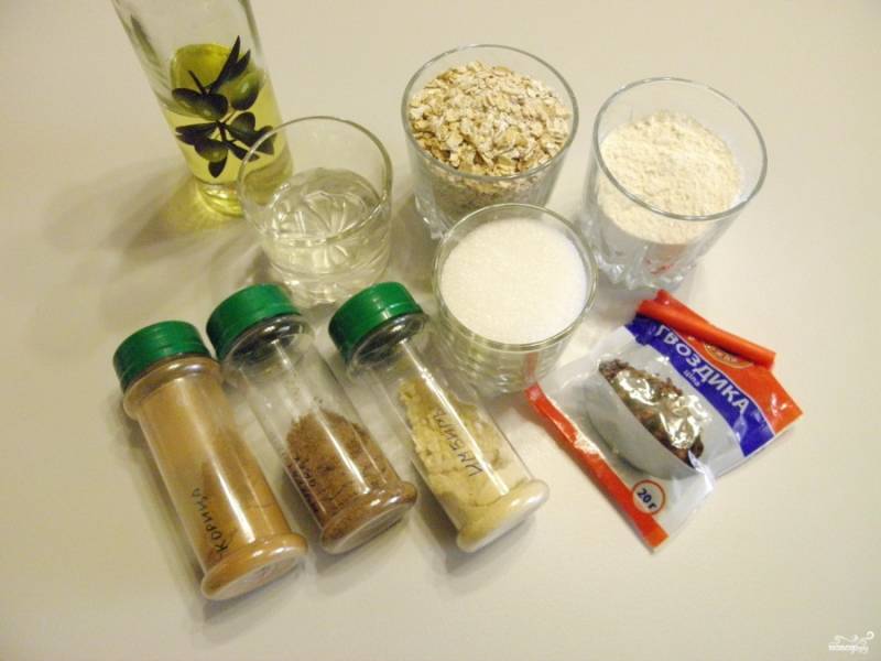 1. Подготовьте специи, воду, растительное масло и муку. Хлопья нужно брать быстрого приготовления. Также понадобится блендер. Приступим!
