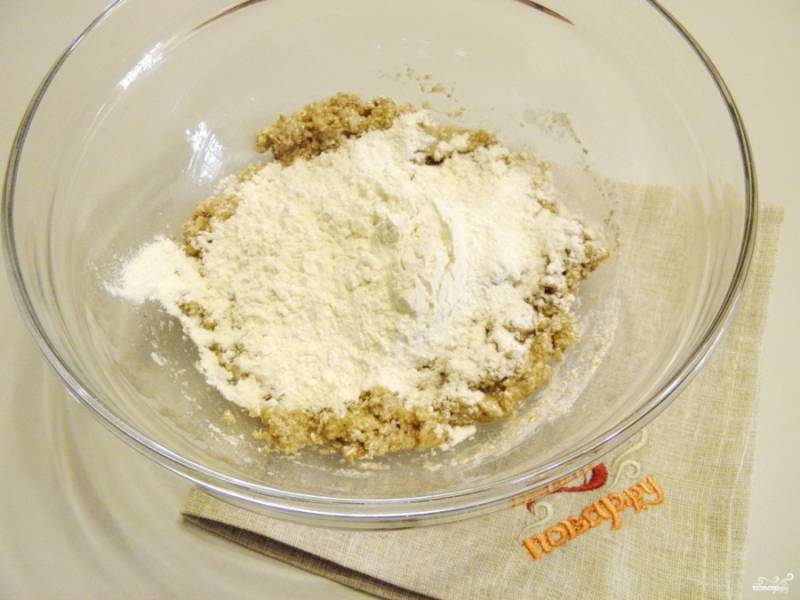 6. Всыпьте в самом конце муку, снова хорошенько перемешайте тесто для печенья.
