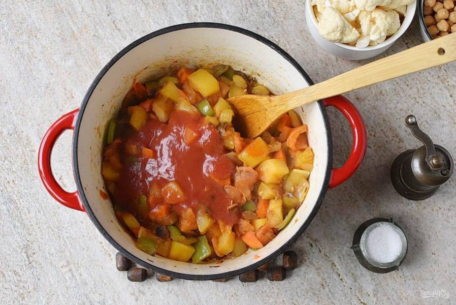 Добавьте томатный соус, перемешайте и прогрейте пару минут.