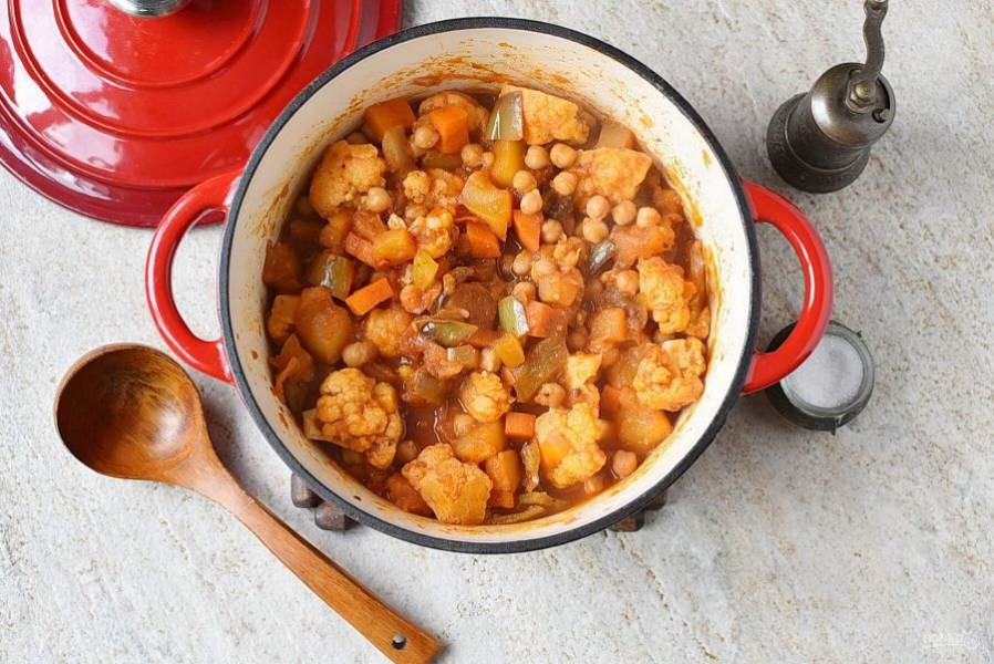 Готовое рагу перемешайте, попробуйте на соль