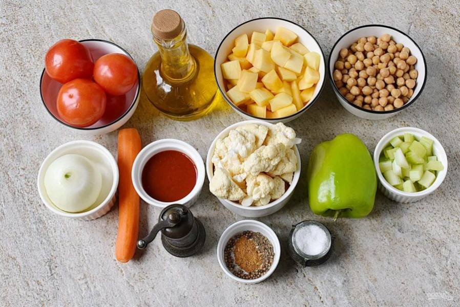 Подготовьте продукты для постного рагу.