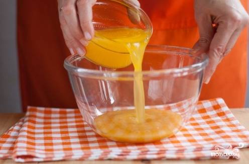 Апельсиновый сок смешайте с желатином, дайте последнему набухнуть.