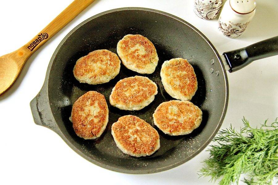 Выложите котлеты на хорошо разогретую сковороду с растительным маслом и обжарьте с двух сторон примерно по 3 минуты до румяности.