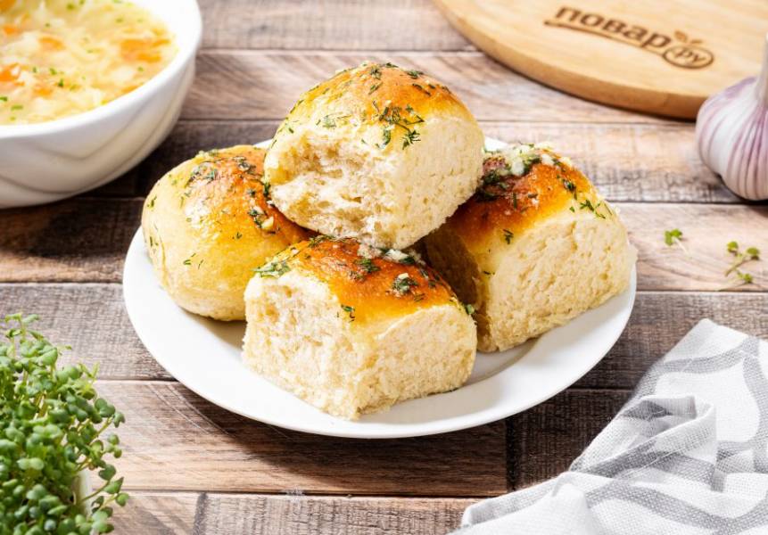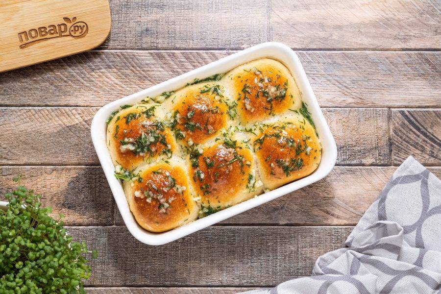 Готовые пампушки, пока они еще горячие, смажьте чесночным соусом.