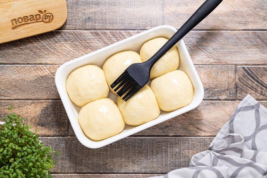 Смажьте пампушки растительным маслом для румяного цвета.