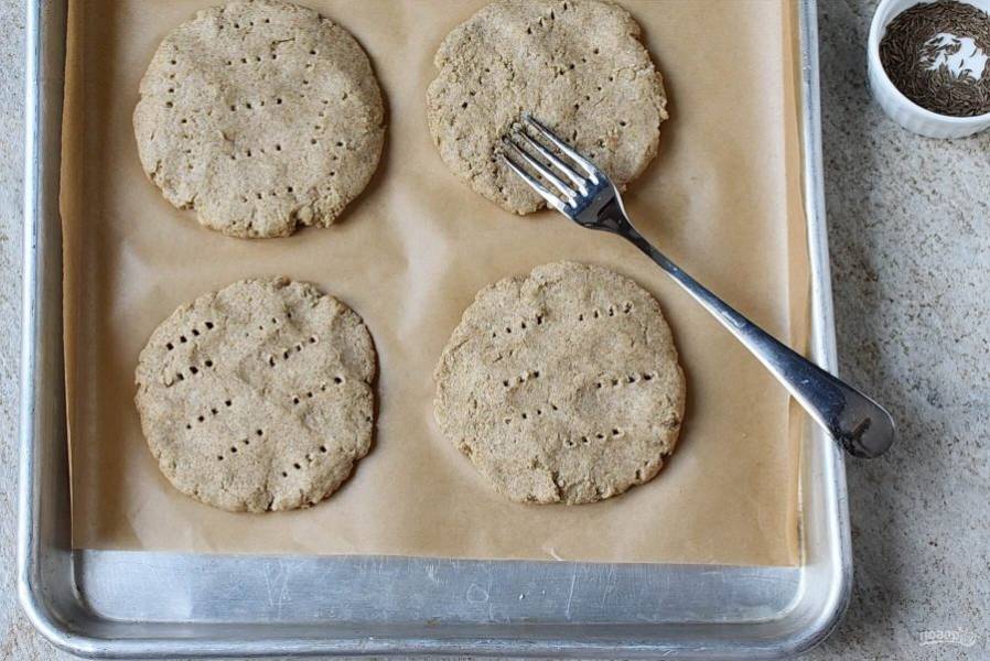 Наколите лепешки вилкой, чтобы они не вздувались при выпечке.