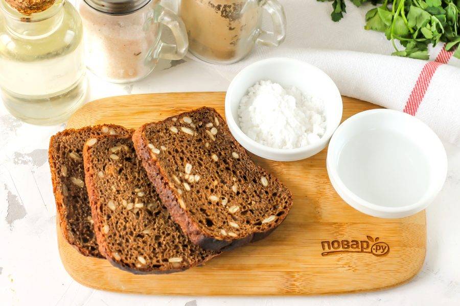 Подготовьте указанные ингредиенты. Хлеб можно использовать черный или ржаной с различными добавками: семечками, изюмом и т.д.