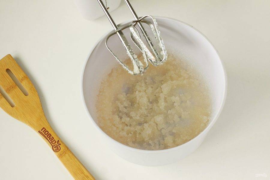 В другой глубокой миске соедините масло и сахар. Взбейте.