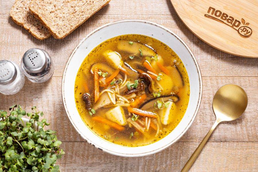 Постный грибной суп из сушеных грибов