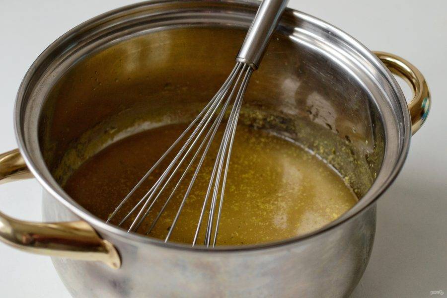 В небольшую часть бульона добавьте агар-агар. Перемешайте, чтобы не осталось комочков.