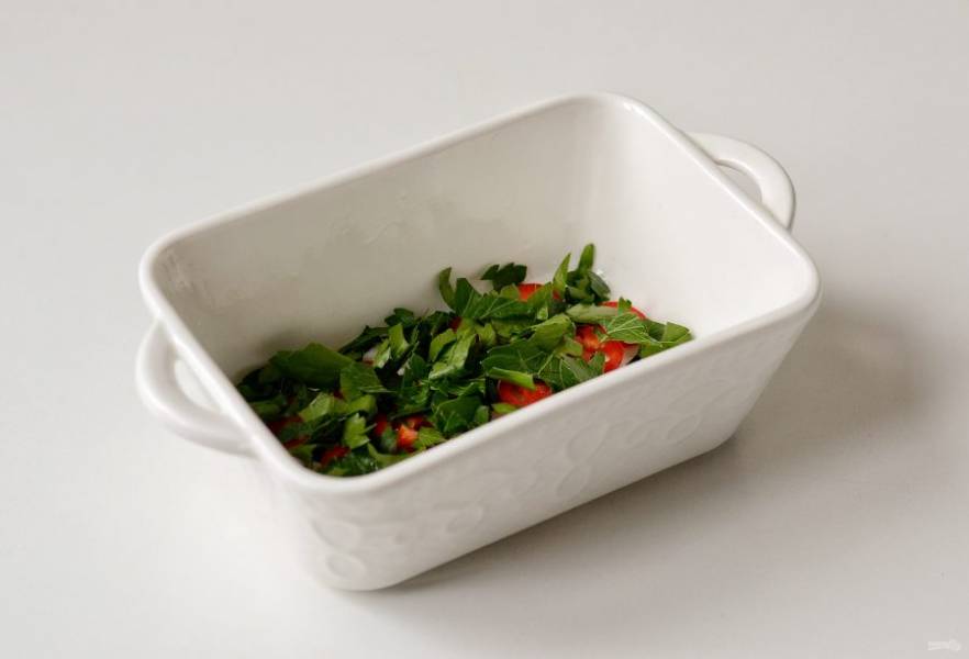 Петрушку крупно порубите, выложите сверху.