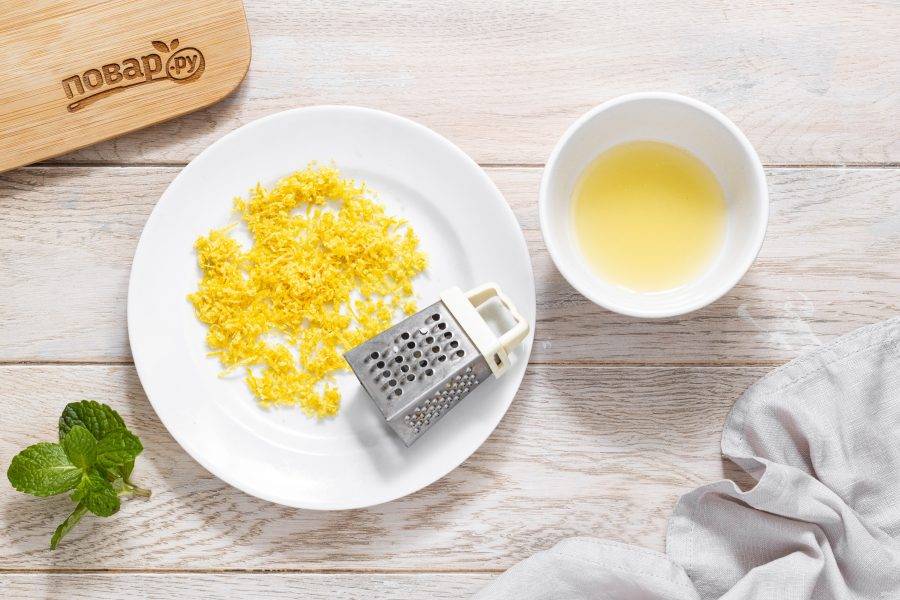 Лимон тщательно помойте и обсушите, снимите цедру. Затем выжмите из лимона необходимое количество сока.