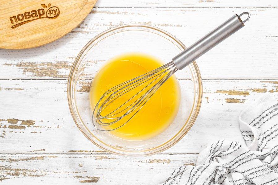 В отдельной миске смешайте растительное масло, апельсиновый сок и уксус.