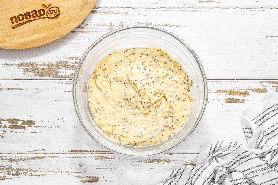 Еще раз перемешайте, чтобы цедра и чиа равномерно распределились по тесту.