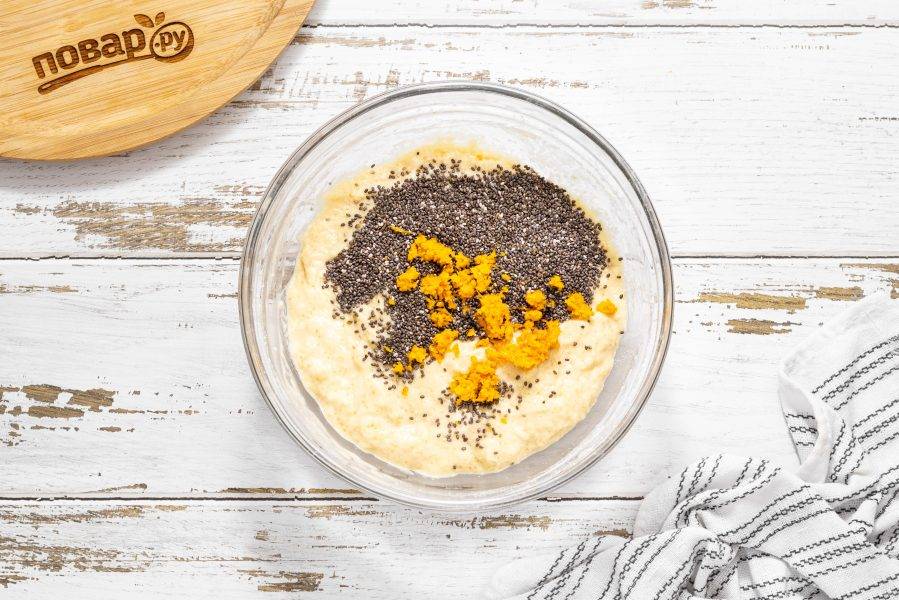 Добавьте апельсиновую цедру и семена чиа.