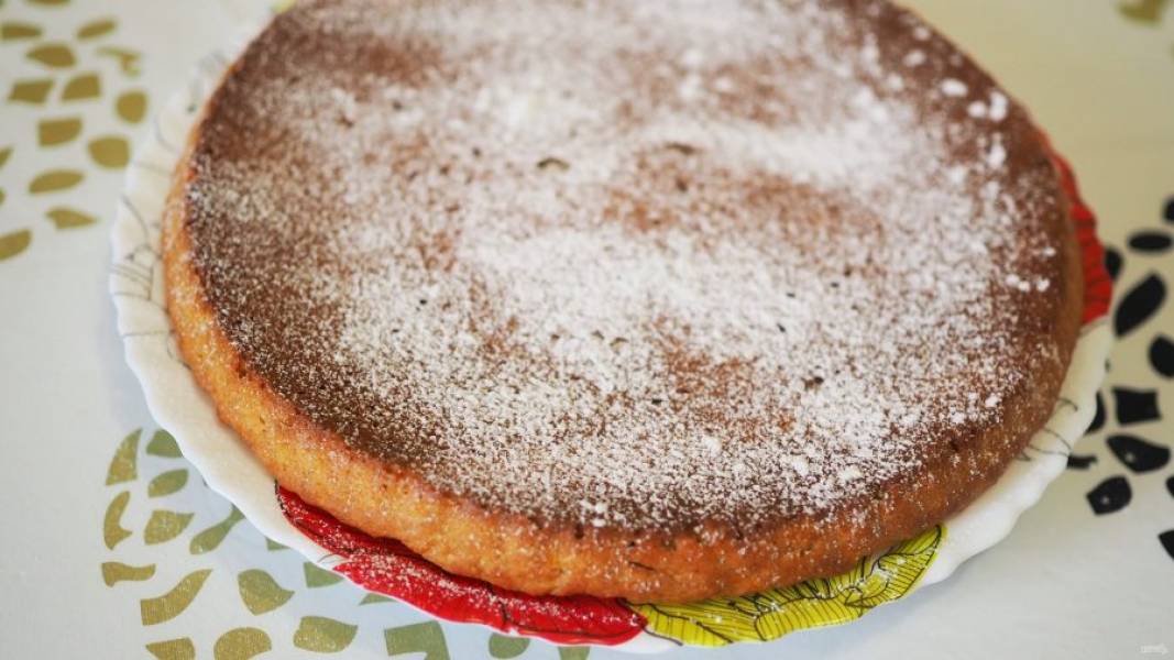 Дайте готовой выпечке немного остыть и подавайте к чаю, по желанию, посыпав пирог сахарной пудрой.