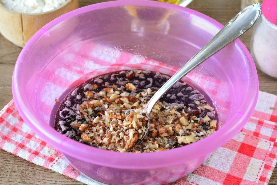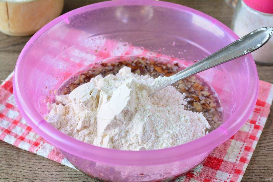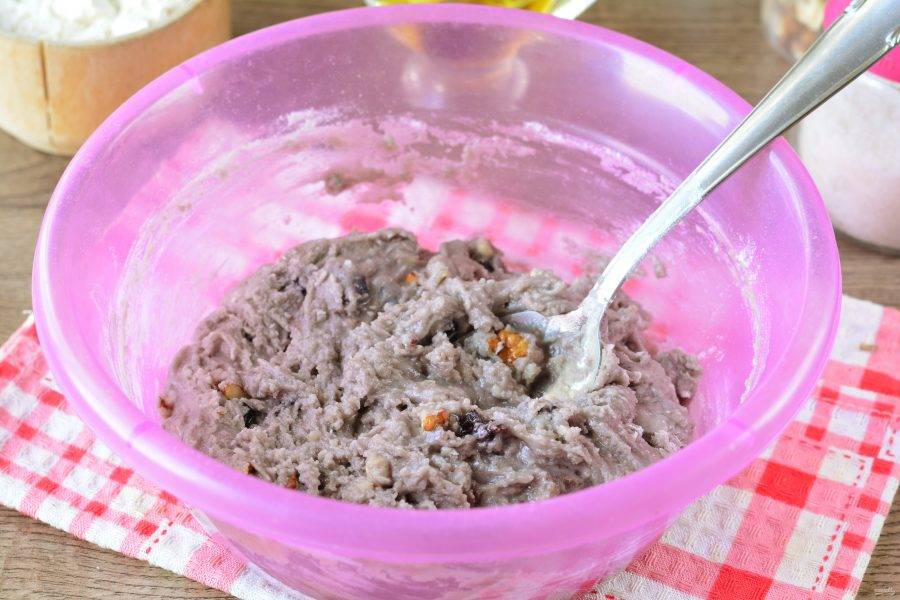 Перемешайте, чтобы получилось тесто без комочков. Оно будет немного липким.