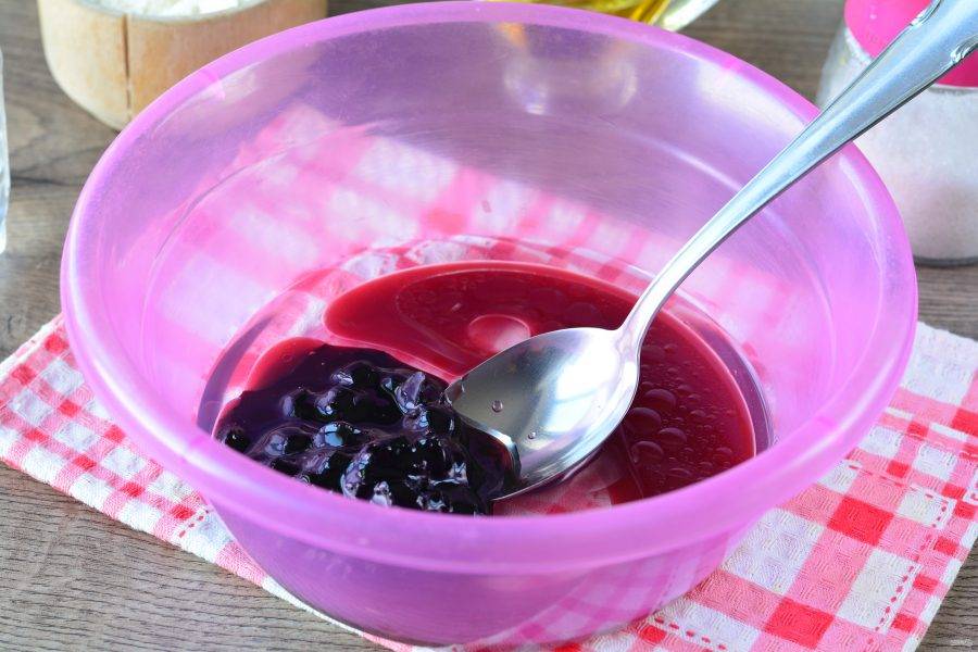 Смешайте в миске сок, масло и варенье. У меня было смородиновое.
