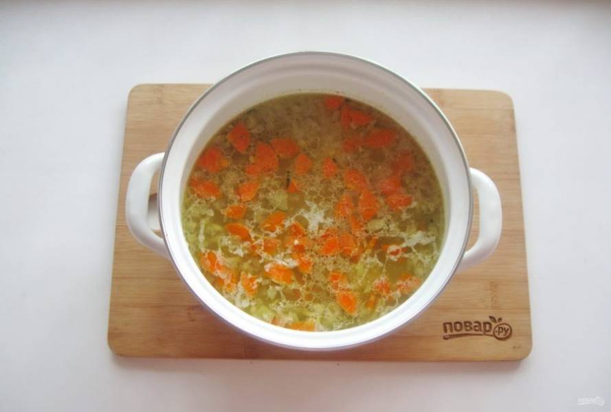Добавьте в кастрюлю. Суп посолите и поперчите по вкусу.