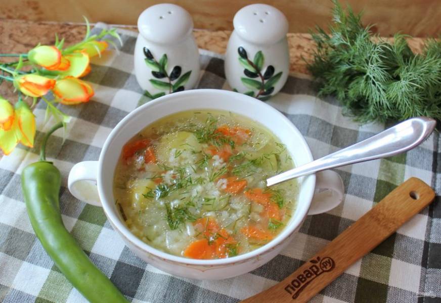 Постный рассольник с рисом готов. Можно подавать к столу.