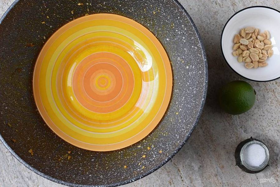 Разогрейте масло в глубокой сковороде. Высыпьте две трети молотого арахиса и слегка обжарьте, помешивая, до появления аромата.