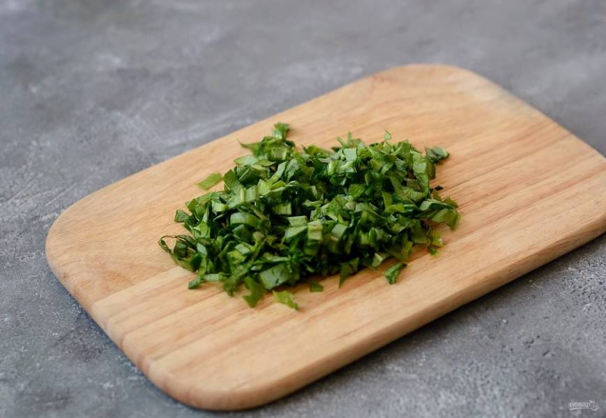 Черемшу помойте, обсушите и мелко порубите листья.