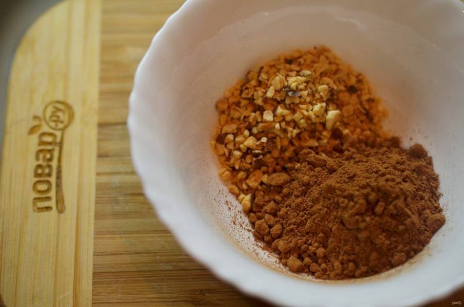 3. Какао-порошок просейте, миндаль разомните скалкой или блендером.