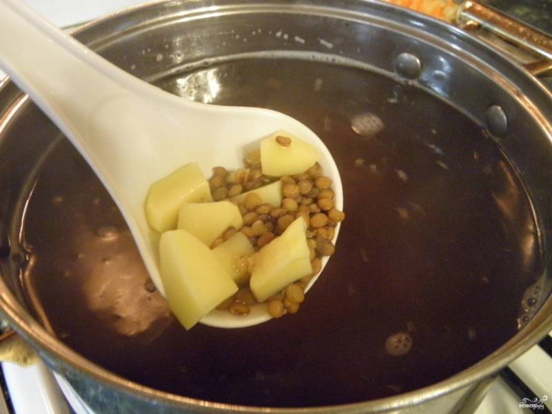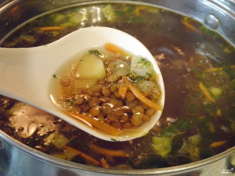 Чечевичный суп без мяса - отличное, сытное и вкусное первое блюдо. Подойдет всем вегетарианцам и тем, кто периодически держит пост.