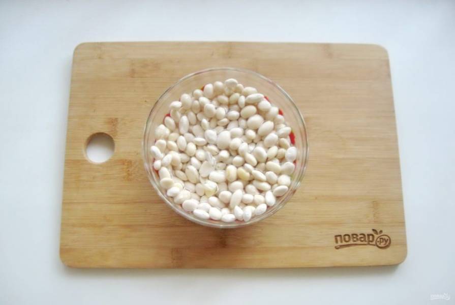 Фасоль хорошо помойте и залейте холодной водой на 4-5 часов, можно на ночь.