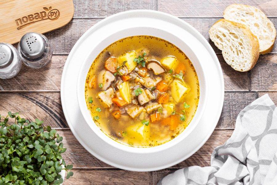 Постный суп с грибами готов, приятного вам аппетита!
