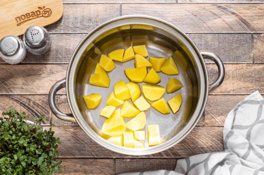 Переложите в кастрюлю картофель.