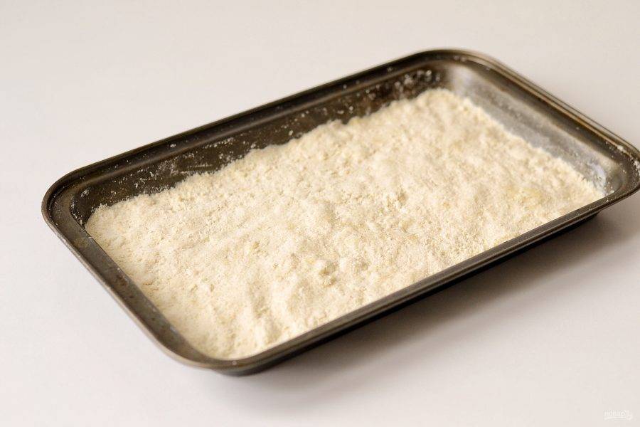 Выложите 2/3 получившегося теста в форму для запекания. Слегка утрамбуйте ее.