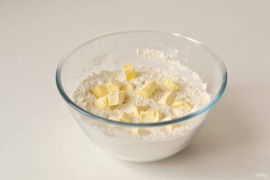 Разотрите маргарин руками с мукой, чтобы образовалась крошка.