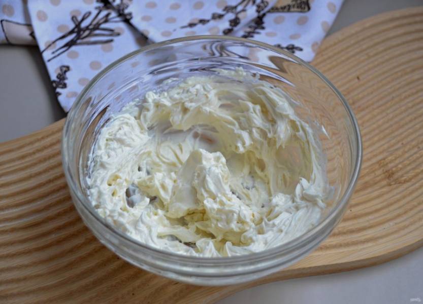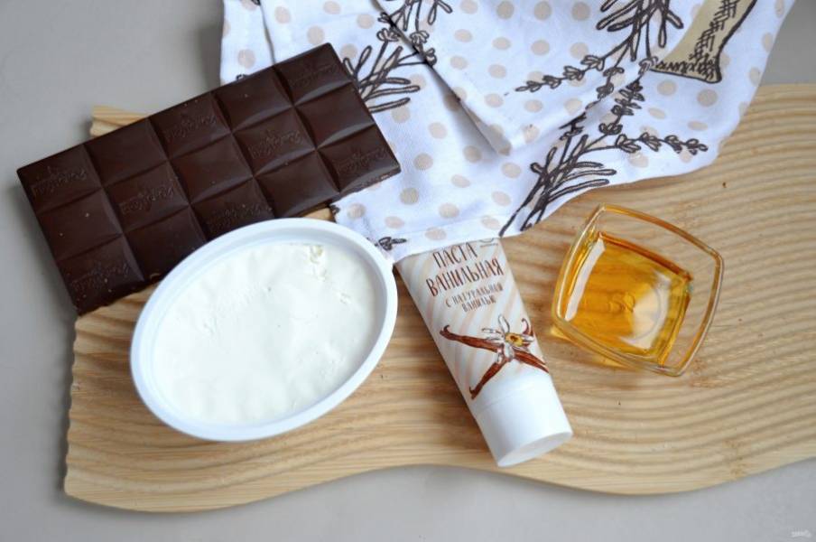 Взбейте сливочный творожный сыр (или рикотту) с добавлением меда (или сиропа топинамбура), добавьте 1 ч.л. ванильной пасты.