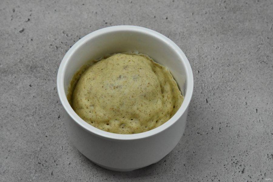 Соберите получившееся тесто с боков формы с помощью силиконовой лопатки. Получившееся тесто должно занимать не более 3/4 части объема формы.