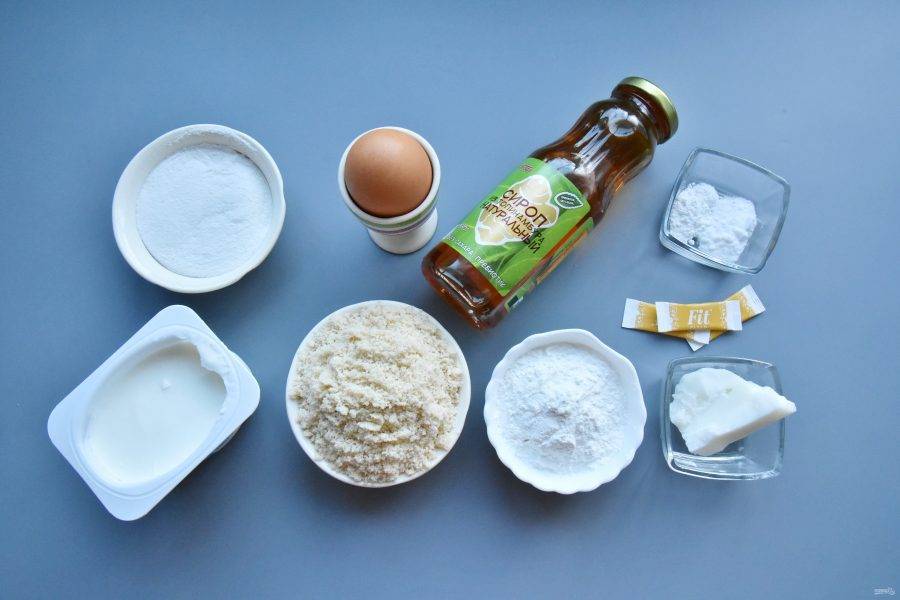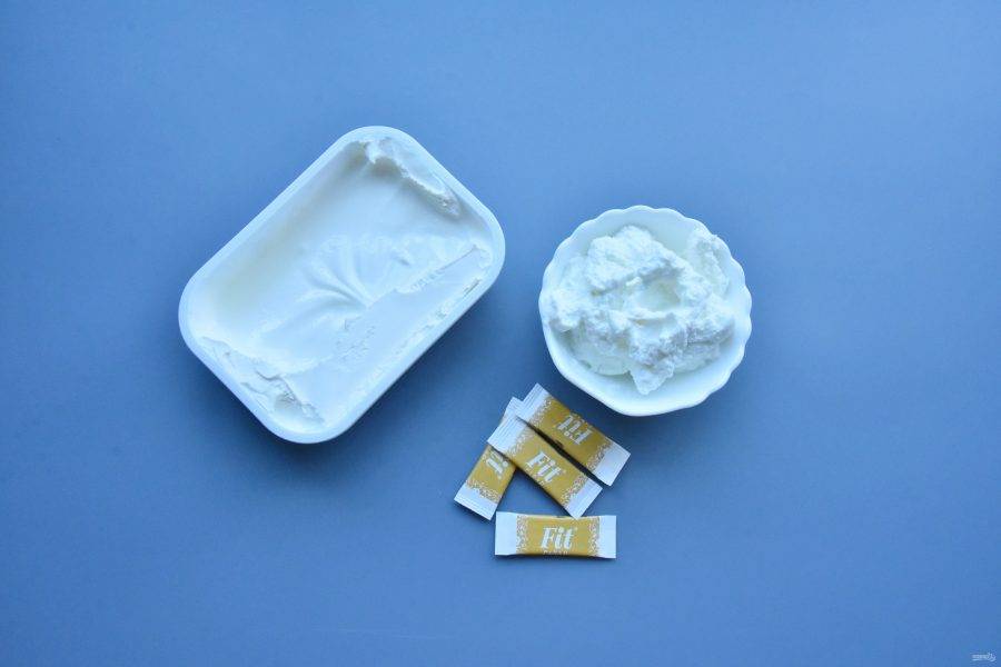 Для крема подготовьте сахарозаменитель, мягкий пастообразный обезжиренный творог, сливочный сыр с низким содержанием жира. Крем-чиз можно приготовить самостоятельно из кефира. Данный рецепт можно найти на сайте.