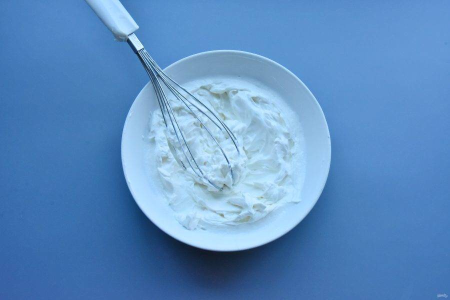 Смешайте все ингредиенты крема в однородную массу. Охладите крем в холодильнике.