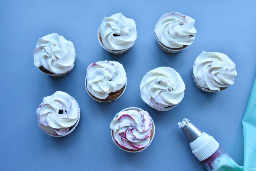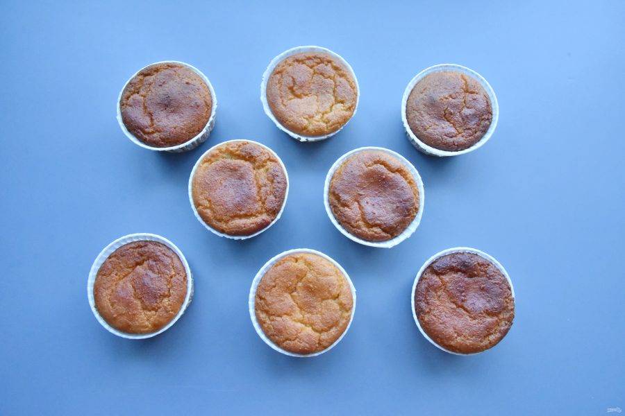 Выпекайте капкейки в духовке, разогретой до 170 градусов в течение 35 минут. Готовность изделий проверьте деревянной лучинкой.