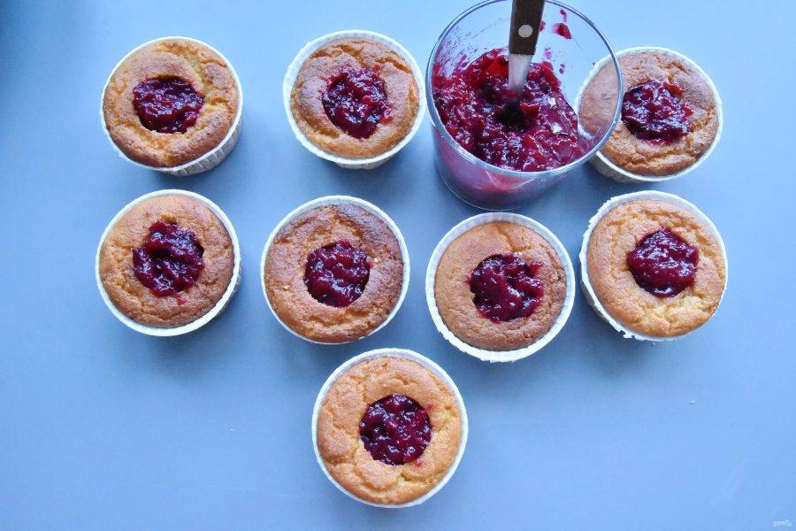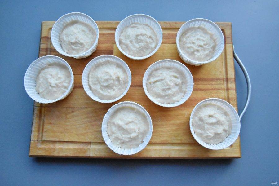 Подготовьте формы для запекания капкейков. Разложите в них подготовленное тесто, заполнив формы на 2/3 объема.
