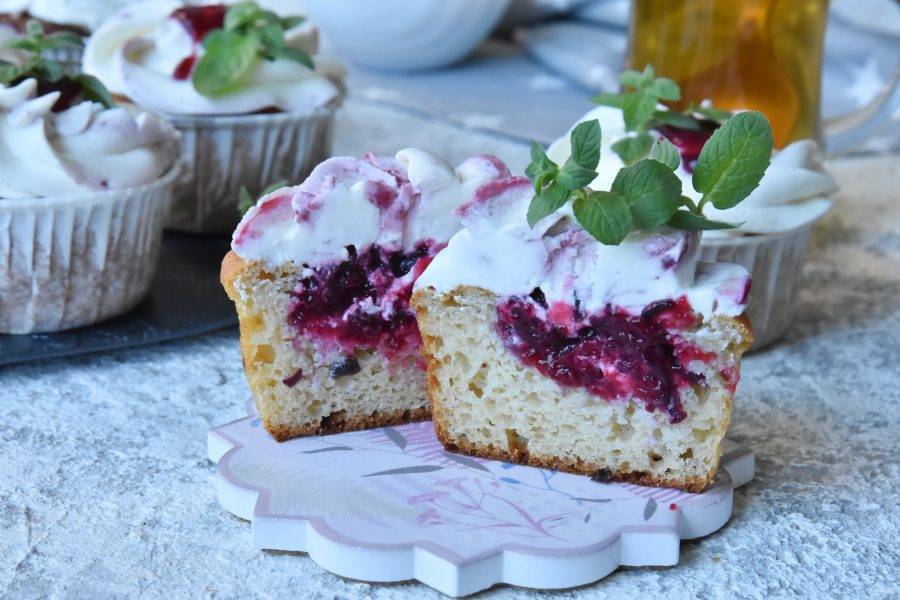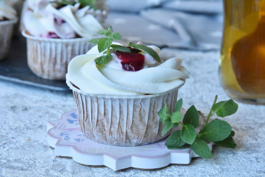 Капкейки получаются изумительными. С мягким, легким и влажным мякишем. Необычной начинкой с приятной кислинкой и нежнейшим творожным кремом.