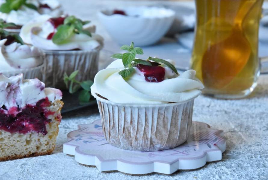 Попробуйте приготовить миндальные ПП капкейки с джемом из суданской розы (каркаде) и творожным кремом. Обязательно берите на заметку рецепт!