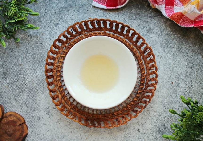 После того как центральная начинка замерзнет, займитесь основной начинкой. Замочите желатин в воде и оставьте для набухания, согласно инструкции.