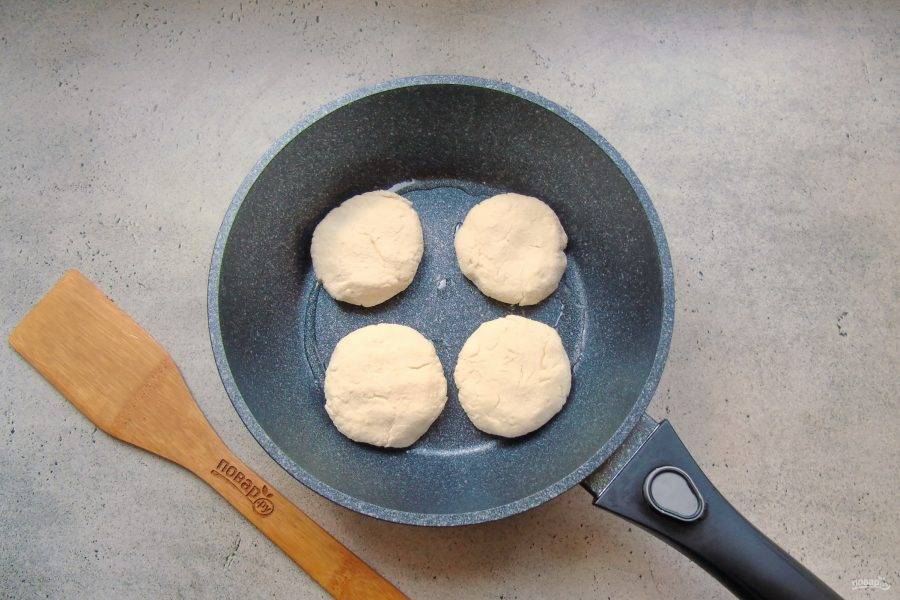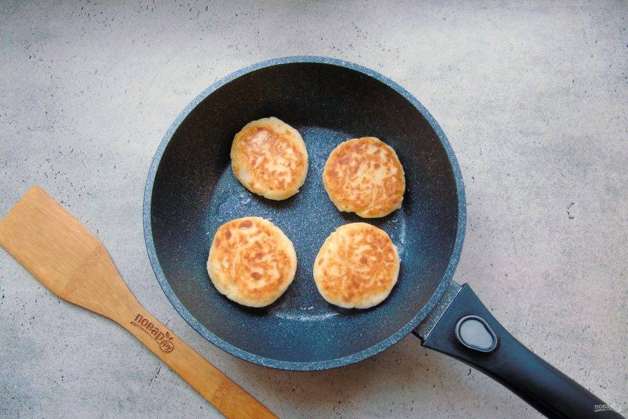 Обжарьте сырники с обеих сторон до золотистого цвета.