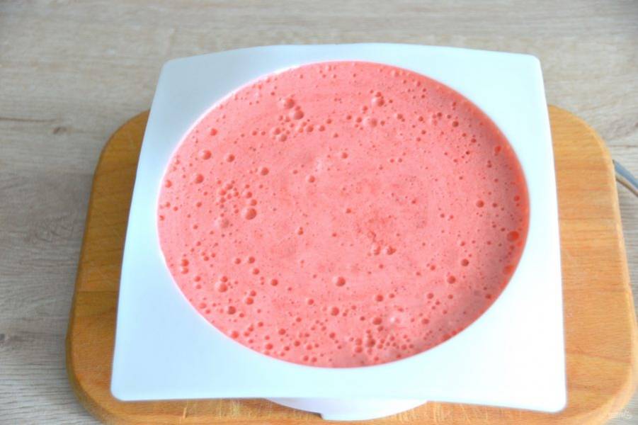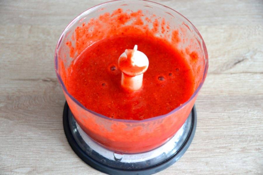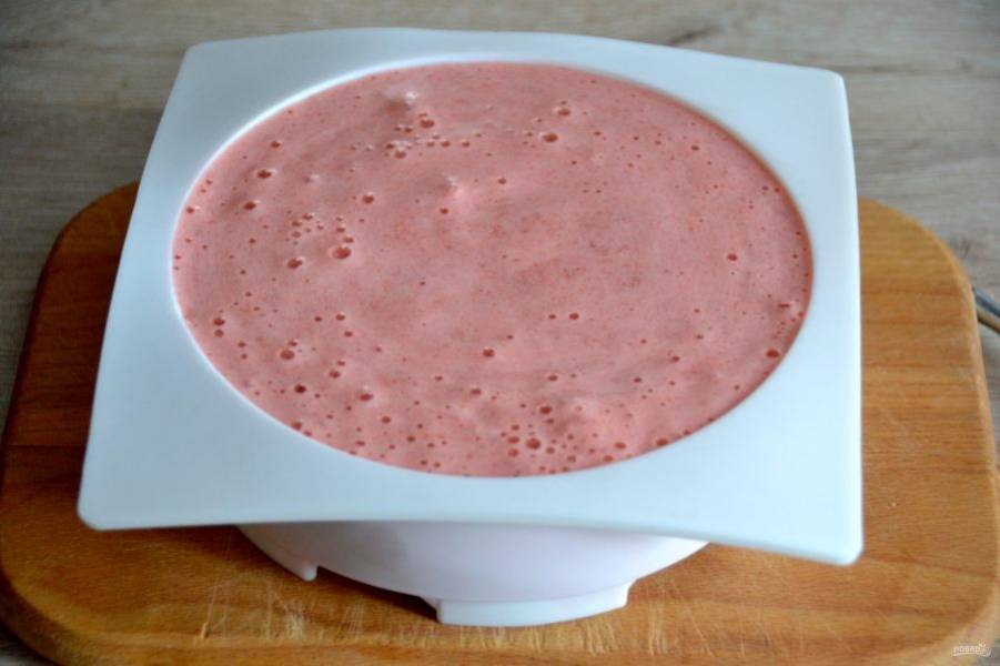 Измельчите ягоды в пюре, которое можно процедить, а можно оставить так для большей натуральности. Замочите желатин в воде в соответствии с указаниями на упаковке, в данном рецепте в соотношении 1:6.