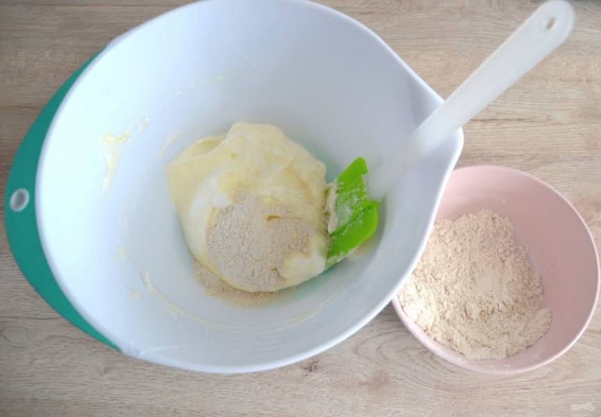 Частями вмешайте сухие ингредиенты до однородной массы.