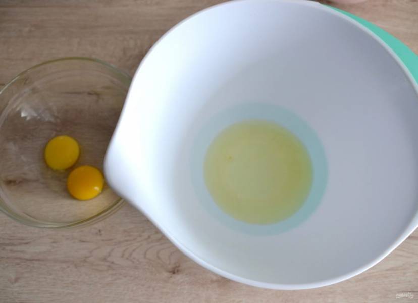 - Яйца 3 штуки 2 яйца — в бисквит, 1 яичный белок — в суфле