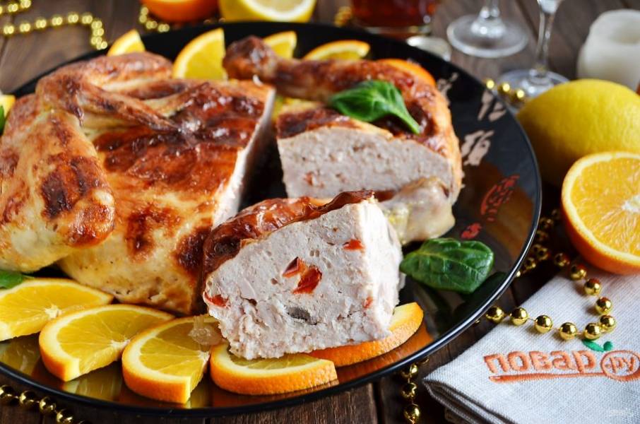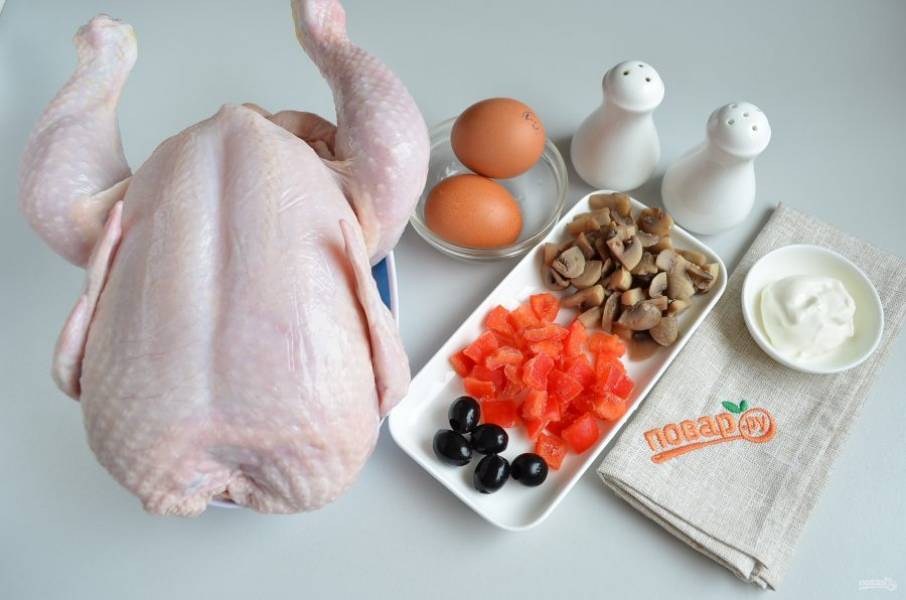 Курочка на праздничном столе всегда актуальна. Это блюдо красивое и вкусное, привлекает внимание. И сегодня у меня в качестве начинки: маринованные грибы, сладкий красный перец и маслины без косточек.