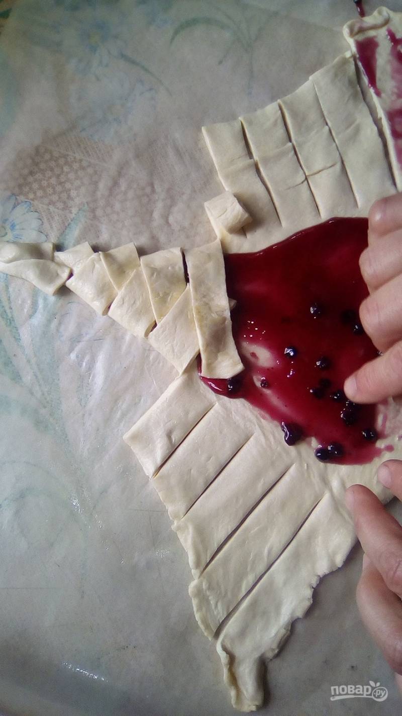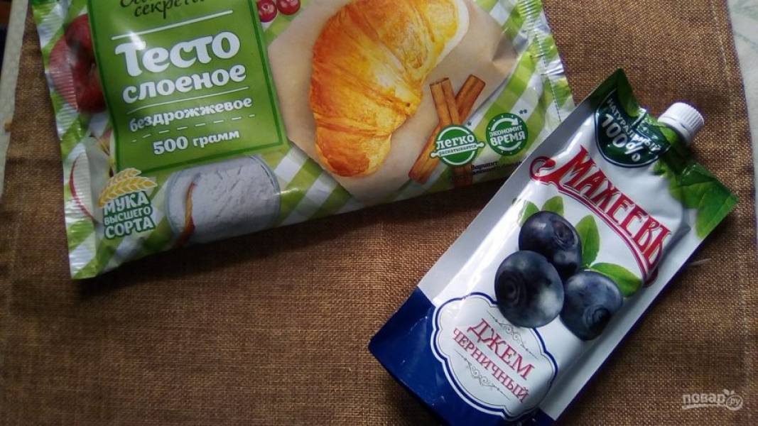 Для приготовления слойки нам понадобится готовое слоёное тесто и черничный джем.