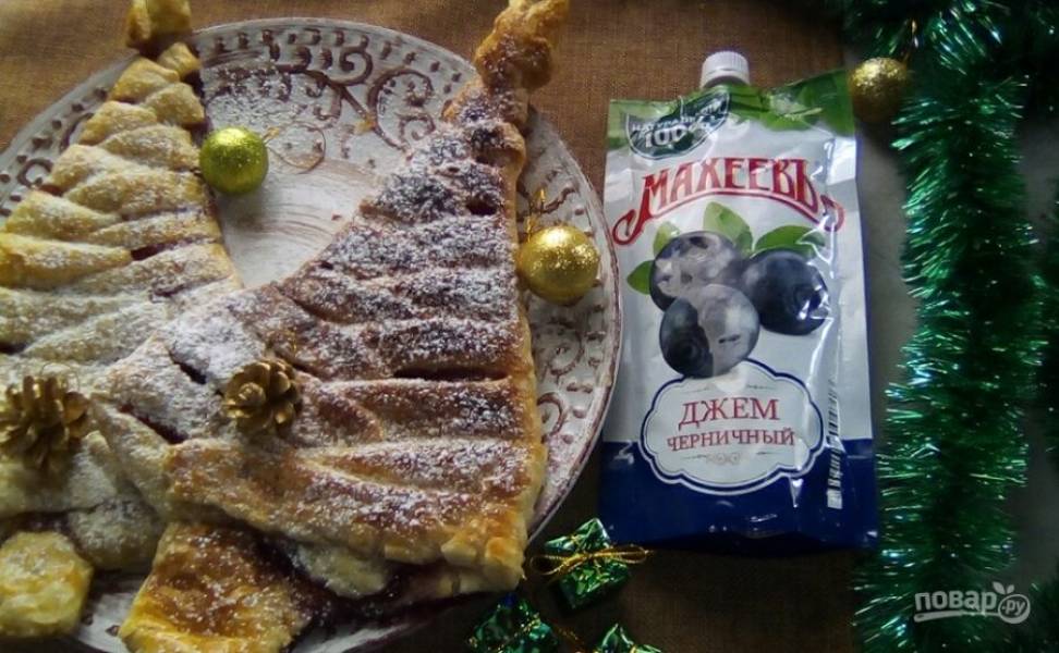 Праздничная слойка "Ёлочка" с черничным джемом